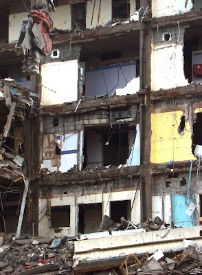 A series of photos depicting the current demolition of St Mary's Hospital.